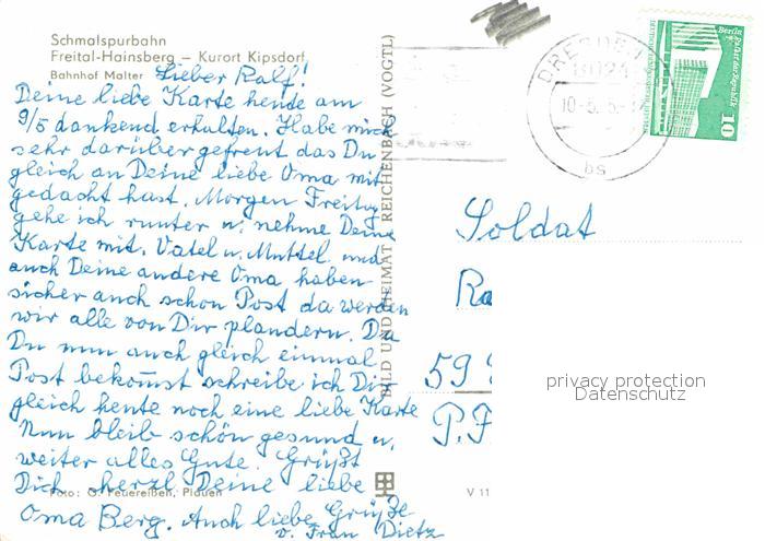 alte Postkarte Lokomotive 991794-9 Schmalspurbahn Freital-Hainsberg Bahnhof Malter postalisch gelaufen Erhaltung siehe scans [PaolaD17]