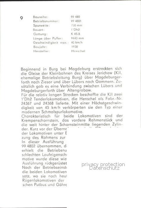 Lokomotive 994801 Deutsche Reichsbahn postalisch nicht gelaufen Keine Postkarte (siehe scan) Erhaltung siehe scans