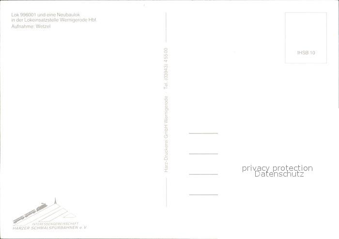 Lokomotive 996001 Neubaulok Wernigerode Hauptbahnhof postalisch nicht gelaufen Erhaltung siehe scans