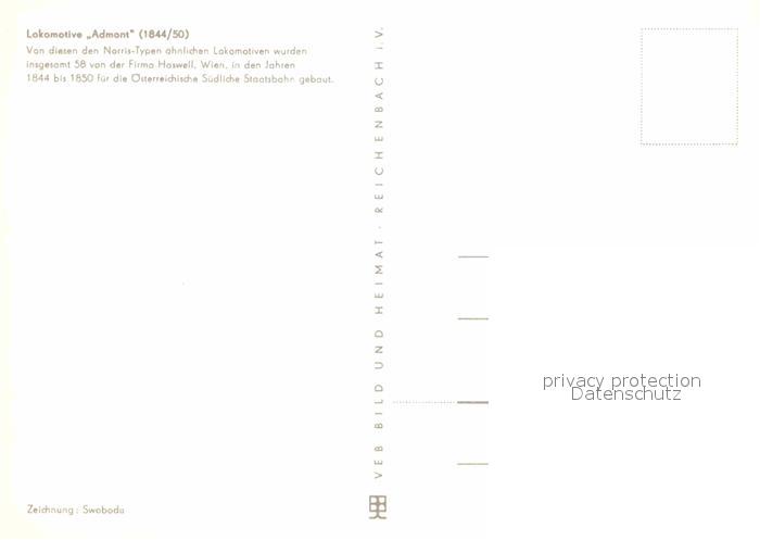 Lokomotive Admont 1844/50 Zeichnung Swoboda postalisch nicht gelaufen Erhaltung siehe scans [PaolaD17]