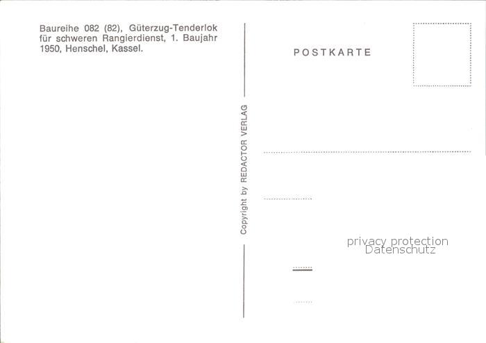Lokomotive Baureihe 082 Gueterzug-Tenderlok postalisch nicht gelaufen Erhaltung siehe scans