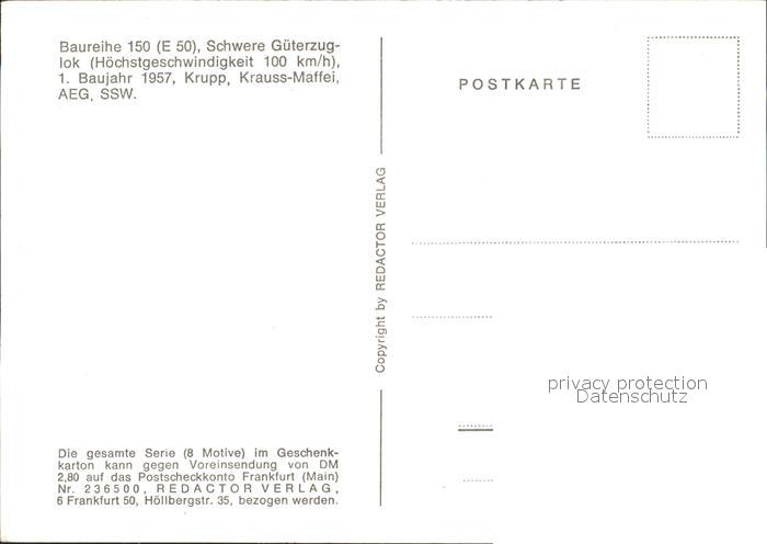 Lokomotive Baureihe 150 E50 Gueterzuglok postalisch nicht gelaufen Erhaltung siehe scans