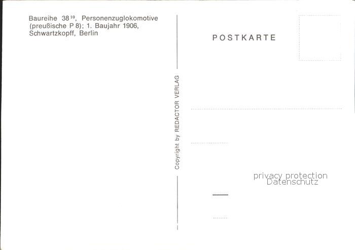Lokomotive Baureihe 38 Personenzuglokomotive Preussische P 8 postalisch nicht gelaufen Erhaltung siehe scans