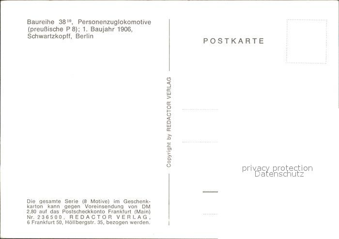Lokomotive Baureihe 38 Preussische P8 postalisch nicht gelaufen Erhaltung siehe scans