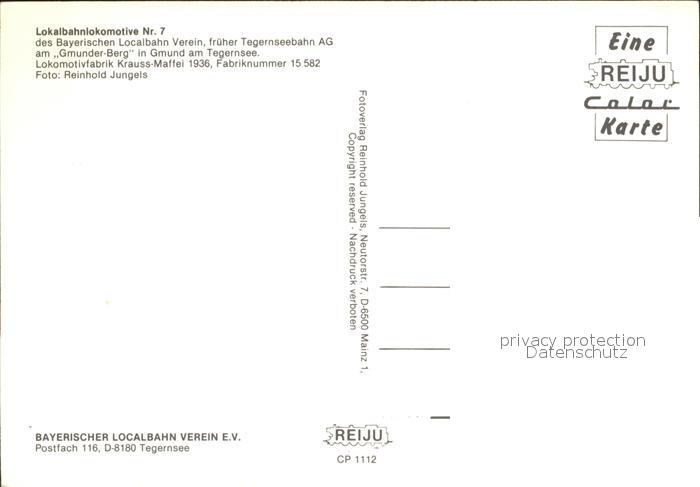 Lokomotive Bayerisches Localbahn Verein Gmunder-Berg postalisch nicht gelaufen Erhaltung siehe scans