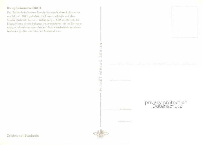 Lokomotive Borsig 1841 Zeichnung Swoboda postalisch nicht gelaufen Erhaltung siehe scans [PaolaD17]
