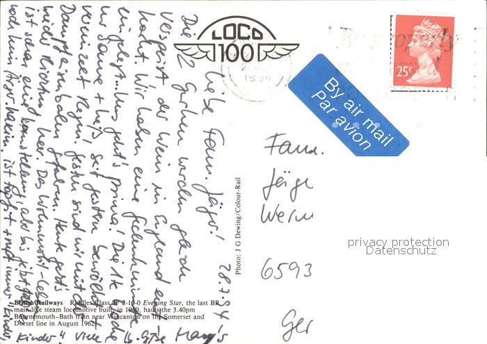 alte Postkarte Lokomotive British Railways Riddles Class 9F 2-10-0 Evening Star postalisch gelaufen Erhaltung siehe scans
