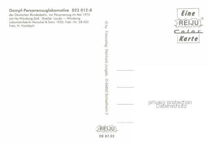 72803785 Lokomotive Dampf-Personenzuglokomotive 023 012-8 Deutsche Bundesbahn KatCode 22040000001000