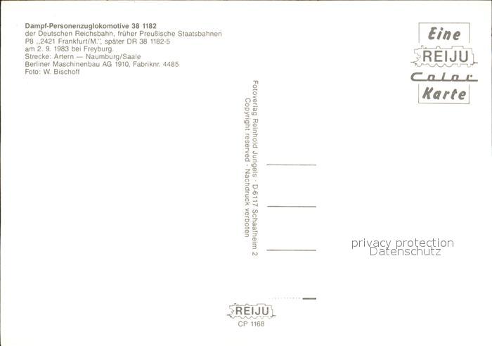 Lokomotive Dampf-Personenzuglokomotive 38 1182 Deutsche Bahn Strecke Artern-Naumburg Saale postalisch nicht gelaufen Erhaltung siehe scans