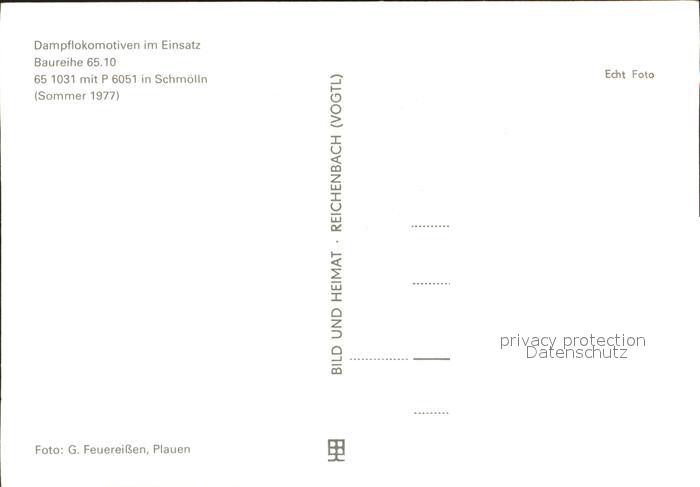 Lokomotive Dampflokomotive 65 1031-7 P 6051 Schmoelln postalisch nicht gelaufen Erhaltung siehe scans