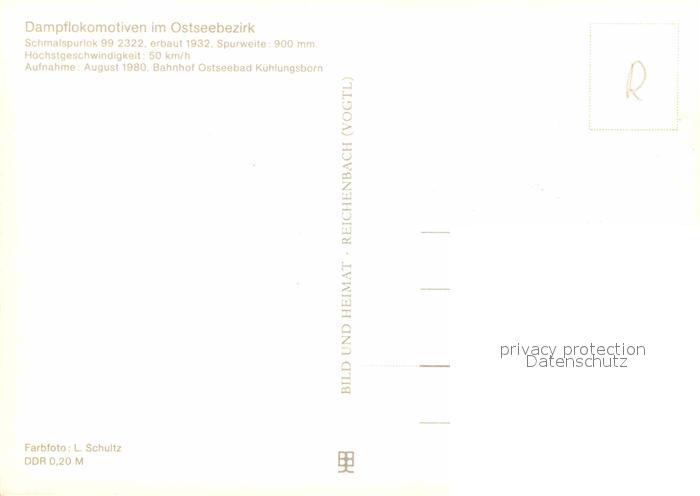 Lokomotive Dampflokomotive 99 2322 Bahnhof Kuehlungsborn postalisch nicht gelaufen Erhaltung siehe scans [PaolaD17]