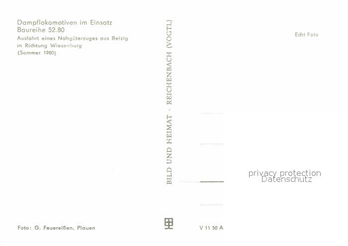 Lokomotive Dampflokomotive Baureihe 52.80 Bahnhof Belzig postalisch nicht gelaufen Erhaltung siehe scans [PaolaD17]