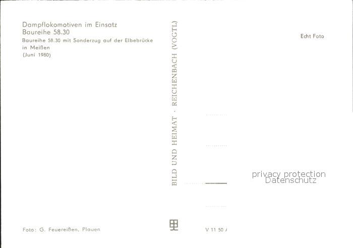 Lokomotive Dampflokomotive Baureihe 58.30 Elbebruecke Meissen postalisch nicht gelaufen Erhaltung siehe scans