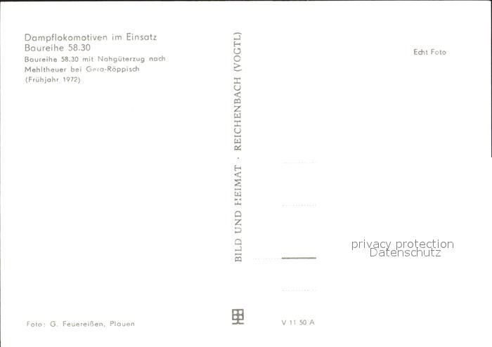 Lokomotive Dampflokomotive Baureihe 58.30 Gera-Roeppisch postalisch nicht gelaufen Erhaltung siehe scans