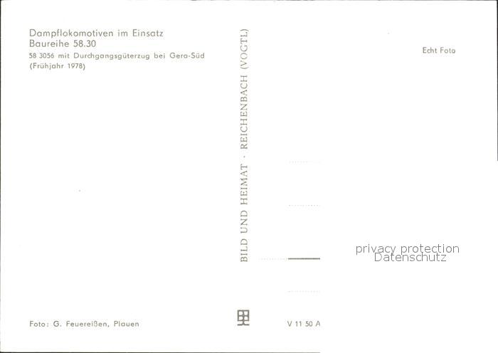72085561 Lokomotive Dampflokomotive Baureihe 58.30 Gera-Süd KatCode 22040000001000