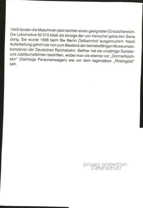Lokomotive Dampflokomotive Baureihe 62 postalisch nicht gelaufen Erhaltung siehe scans