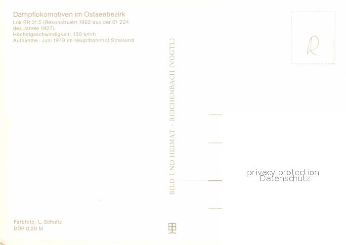 Lokomotive Dampflokomotive BR 01.5 Hauptbahnhof Stralsund postalisch nicht gelaufen Erhaltung siehe scans [PaolaD17]