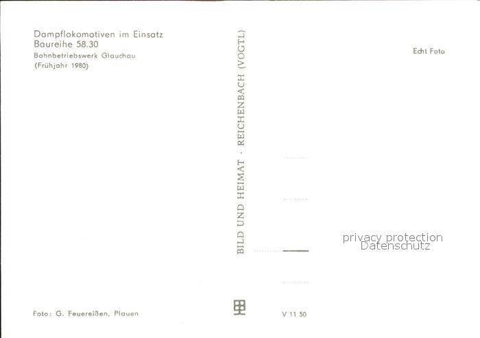 Lokomotive Dampflokomotiven Baureihe 58.30 Bahnbetriebswerk Glauchau postalisch nicht gelaufen