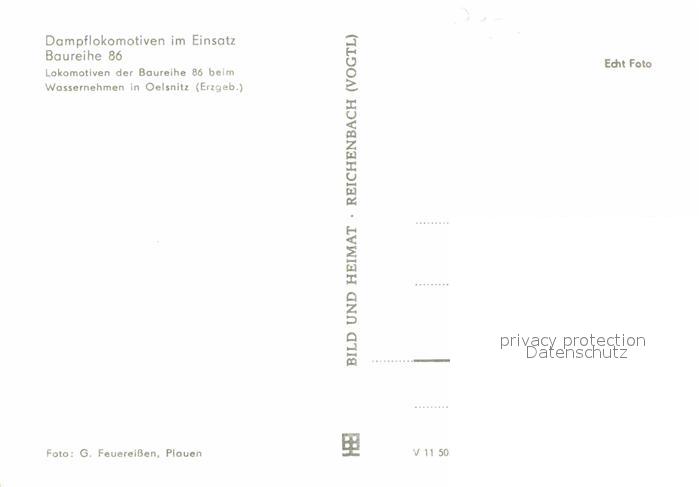 Lokomotive Dampflokomotiven Baureihe 86 Wassernehmen Oelsnitz postalisch nicht gelaufen Erhaltung siehe scans [PaolaD17]