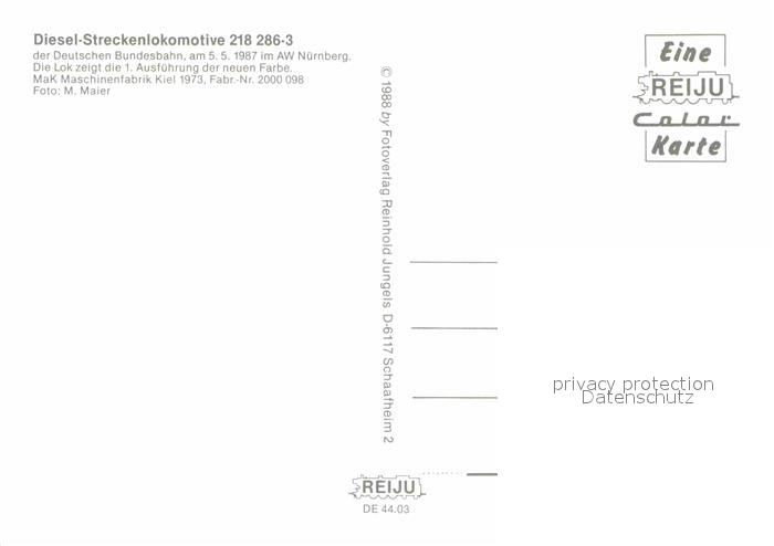 72803719 Lokomotive Diesel-Streckenlokomotive 218286-3 Deutsche Bundesbahn KatCode 22040000001000