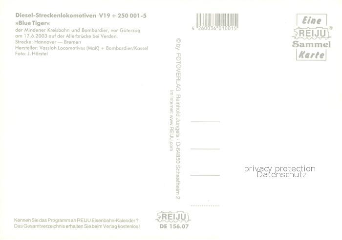 73278841 Lokomotive Diesel-Streckenlokomotiven V19 250 001-5 Blue Tiger Allerbrücke Verden KatCode 22040000001000