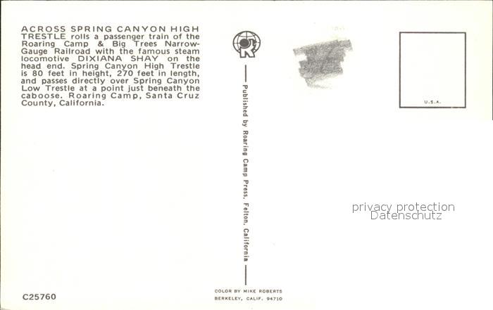 Lokomotive Dixiana Shay Spring Canyon High Trestle Roaring Camp and Big Trees Narrow-Gauge Railroad postalisch nicht gelaufen Erhaltung siehe scans