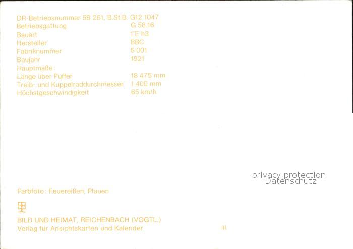 Lokomotive DR-Betriebsnummer 58 261 postalisch nicht gelaufen Erhaltung siehe scans
