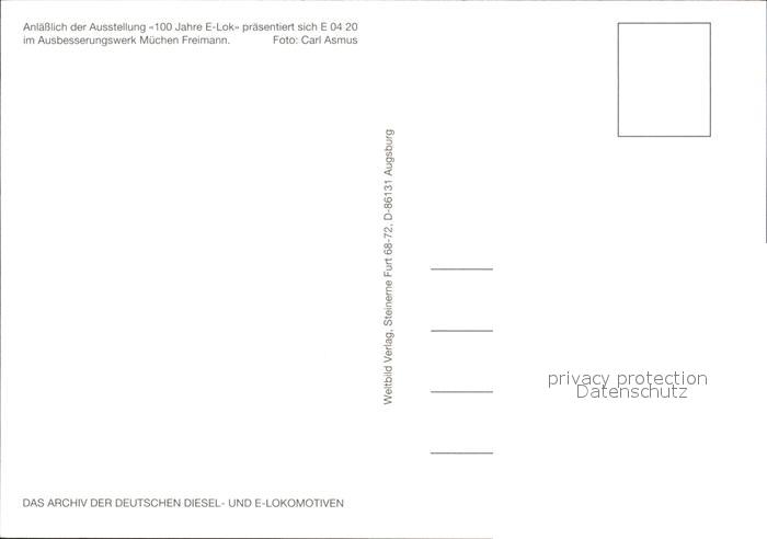 Lokomotive E 04 20 100 Jahre E-Lok Ausbesserungswerk Muenchen Freimann postalisch nicht gelaufen Erhaltung siehe scans
