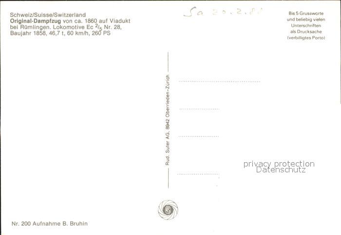 Lokomotive Ec 2/5 Nr. 28 Viadukt Ruemlingen postalisch nicht gelaufen Erhaltung siehe scans