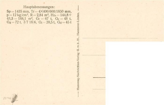 73953290 Lokomotive Eisenbahn Railway No 693 2 C Vierling Heissdampf-Schnellzug HANOMAG postalisch nicht gelaufen Erhaltung siehe scans [SanaeD93] KatCode: 22040000001000