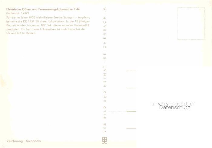 Lokomotive Elektrische Gueterzug-Lokomotive E 44 Zeichnung Swoboda postalisch nicht gelaufen Erhaltung siehe scans [PaolaD17]