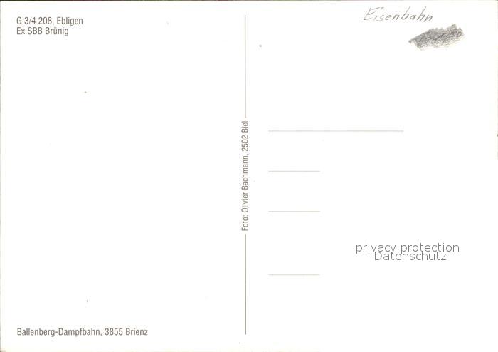 Lokomotive G 3/4 208 Ebligen Ex SBB Bruenig postalisch nicht gelaufen Erhaltung siehe scans