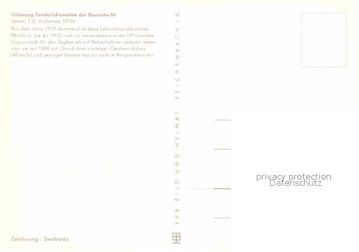 Lokomotive Gueterzug-Tenderlokomotive Baureihe 89 postalisch nicht gelaufen Erhaltung siehe scans [PaolaD17]
