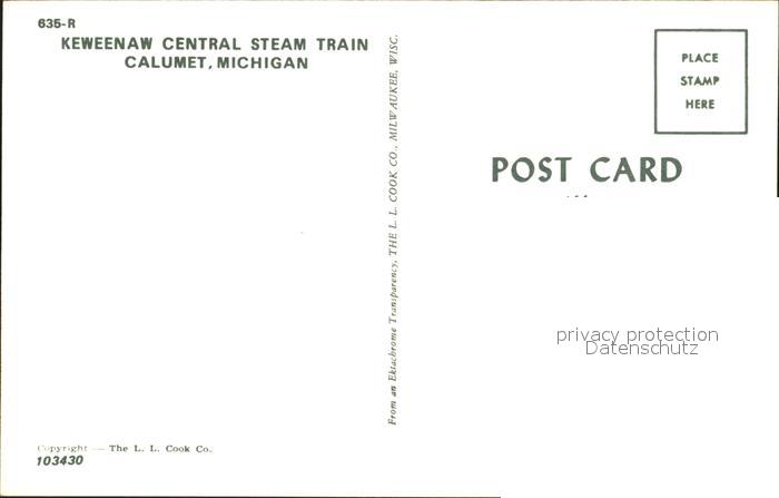 Lokomotive Keweenaw Central Steam Train Calumet Michigan postalisch nicht gelaufen Erhaltung siehe scans
