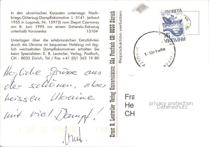 alte Postkarte Lokomotive L 5141 Karpaten Nachkriegs-Gueterzug-Dampflokomotive postalisch gelaufen