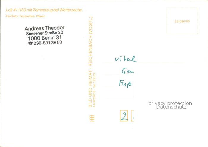 Lokomotive Lok 411130 Zementzug Wetterzeube postalisch nicht gelaufen Erhaltung siehe scans