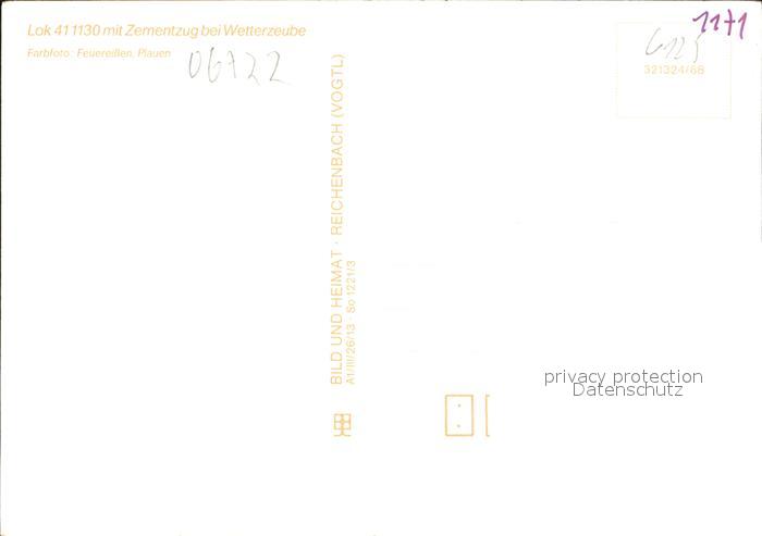 Lokomotive Lok 411130 Zementzug Wetterzeube postalisch nicht gelaufen Erhaltung siehe scans