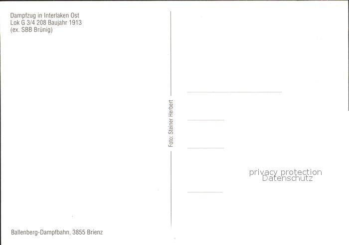 Lokomotive Lok G 3/4 208 Baujahr 1913 Interlaken Ost postalisch nicht gelaufen Erhaltung siehe scans