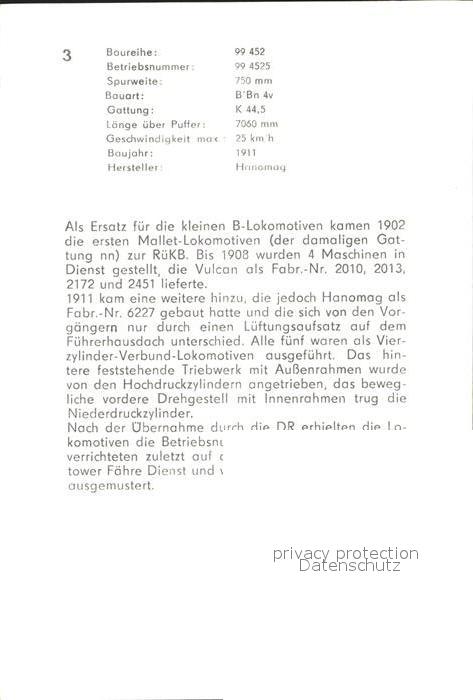 Lokomotive Mallet Lokomotive Baureihe 99 452 postalisch nicht gelaufen
