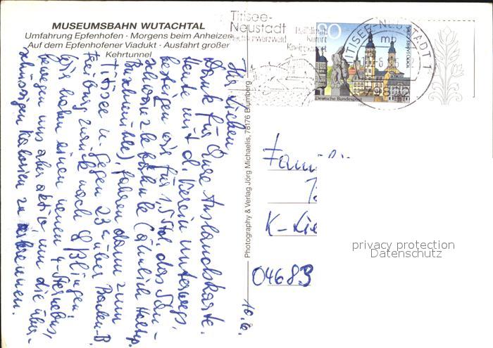 alte Postkarte Lokomotive Museumsbahn Wutachtal Epfenhofen postalisch gelaufen Erhaltung siehe scans
