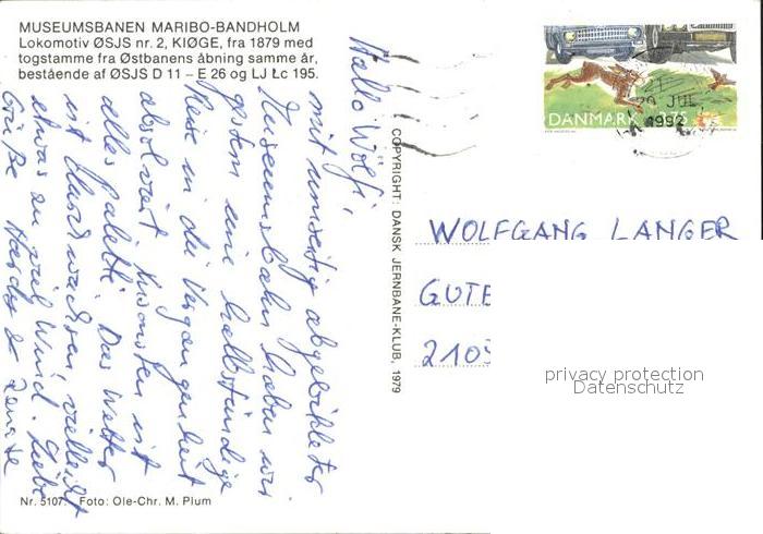 alte Postkarte Lokomotive Museumsbanen Maribo-Bandholm postalisch gelaufen Erhaltung siehe scans