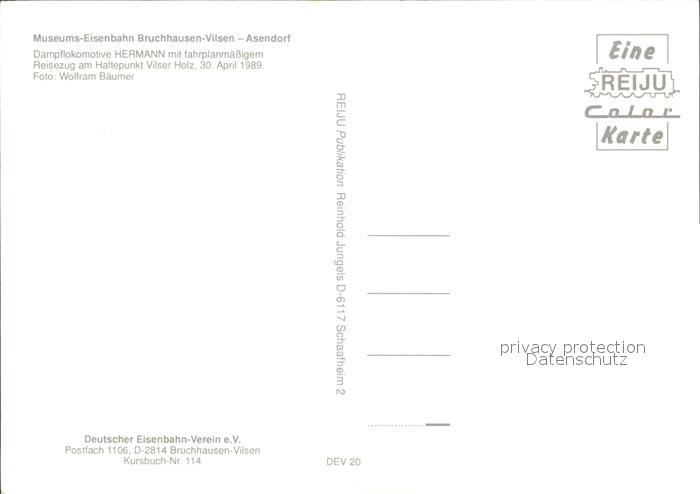 Lokomotive Museumseisenbahn Bruchhausen-Vilsen-Asendorf postalisch nicht gelaufen Erhaltung siehe scans