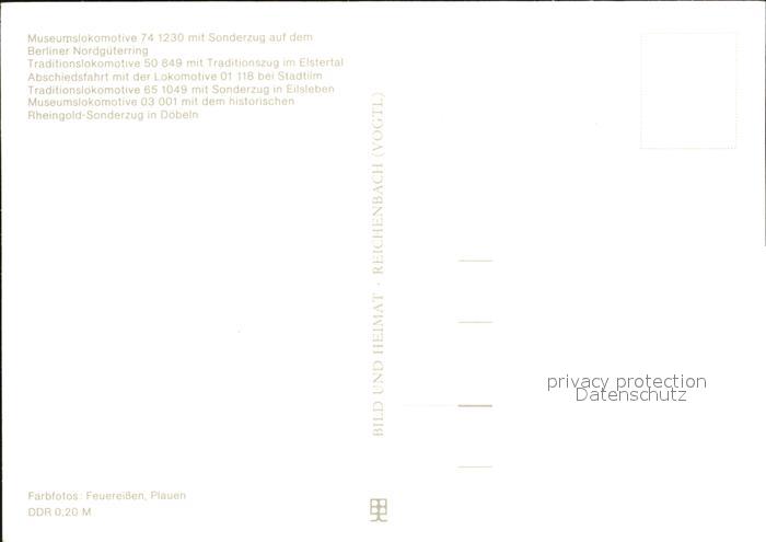 Lokomotive Museumslokomotive 74 1230 Berliner Nordgueterring postalisch nicht gelaufen Erhaltung siehe scans