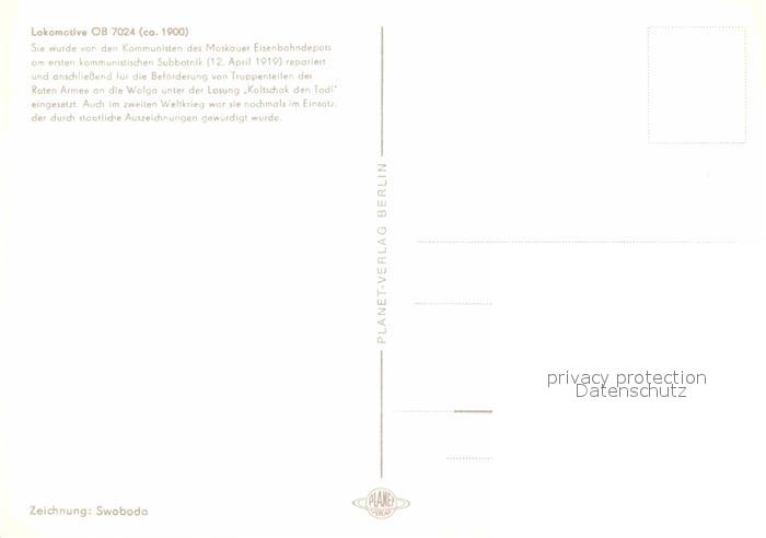 Lokomotive OB 7024 ca. 1900 Zeichnung Swoboda postalisch nicht gelaufen Erhaltung siehe scans [PaolaD17]