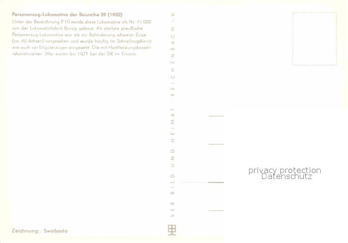 Lokomotive Personenzug-Lokomotibe Baureihe 39 1922 Zeichnung Swoboda postalisch nicht gelaufen Erhaltung siehe scans [PaolaD17]