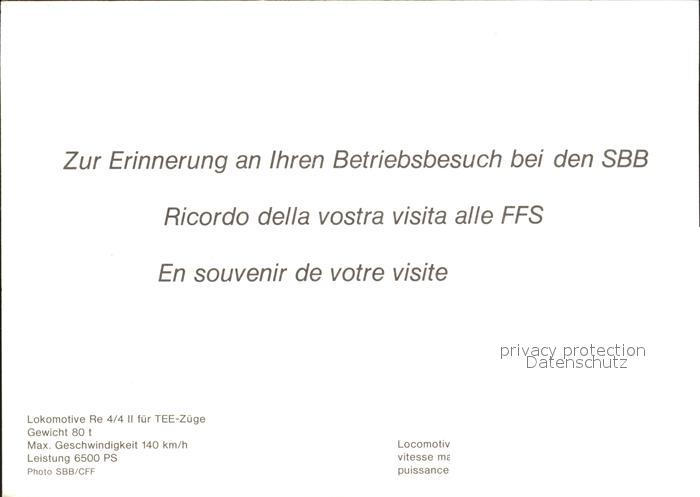 Lokomotive Re 4/4 II Tee-Zug SBB postalisch nicht gelaufen Keine Postkarte (siehe scan) Erhaltung siehe scans