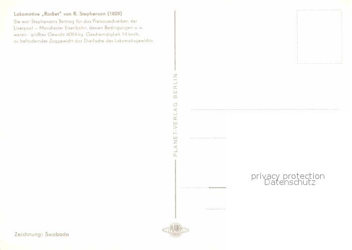 Lokomotive Rocket R. Stephenson 1829 Zeichnung Swoboda postalisch nicht gelaufen Erhaltung siehe scans [PaolaD17]
