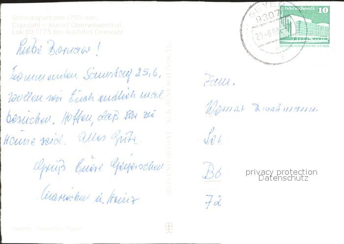 alte Postkarte Lokomotive Schmalspurbahn Cranzahl-Oberwiesenthal Lok 99 1775 postalisch gelaufen Erhaltung siehe scans