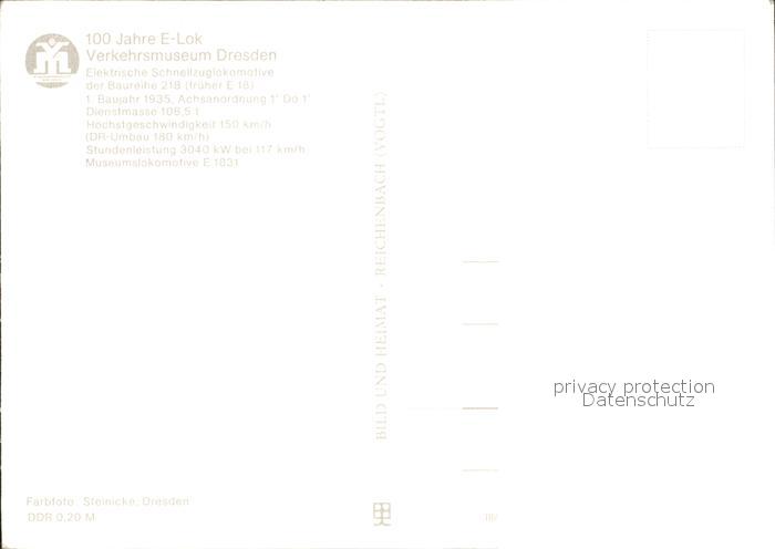 Lokomotive Schnellzug Baureihe 218 Verkehrsmuseum Dresden postalisch nicht gelaufen Erhaltung siehe scans