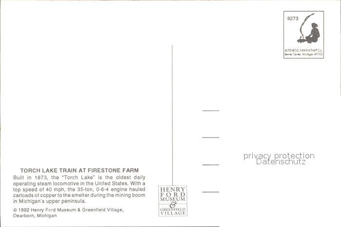 Lokomotive Torch Lake Train Firestone Farm postalisch nicht gelaufen Erhaltung siehe scans [PaolaD17]